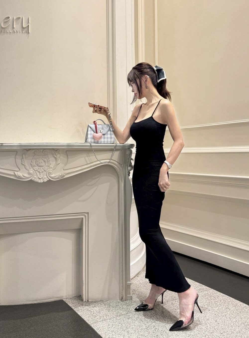 SQUENNA 塑身戰袍細肩長洋裝(現+預)